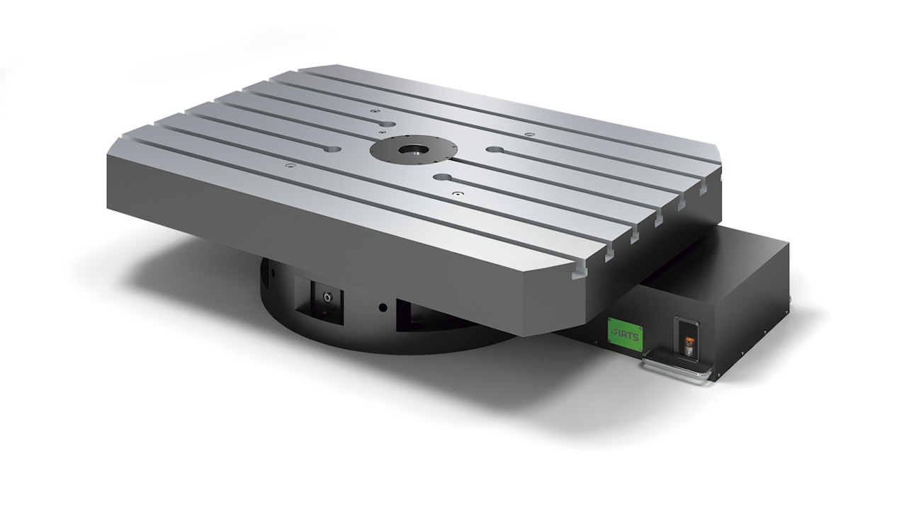 Tables tournantes de haute capacité avec système de transmission maître-esclave (couronne et deux pignons) et réglage jeu électronique en combinaison avec mouvement linéaire par broche billes préchargée et rectifiée et guides linéaires à rouleaux. Disponibilité de configurations adaptables selon les besoins du client. Application : fraisage